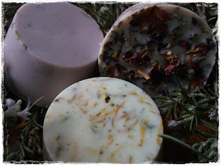 Cada uno con su carácter y un sobreengrasado diferente: pan de Caléndula, Miel y Mandarina sobreengrasado con aceite de almendras, con el aroma natural de la miel, la leche y el aceite esencial de mandarina y con pétalos de la flor suspendidos en el jabón.