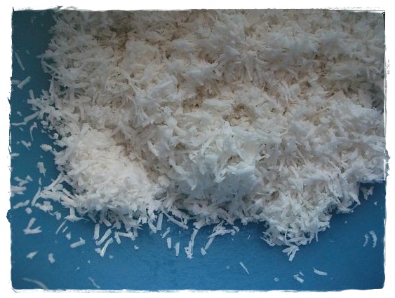 A continuación rompemos el coco, lo pelamos y rallamos la pulpa.