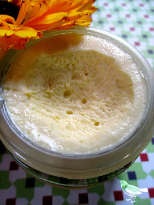 Y así es como una tarde gris en que llovía tanto que las nubes robaban la luz y las calles, a su vez, le arrebataban el agua a las nubes, apareció "del fino aire" mi mousse de caléndula y vino a iluminarla.