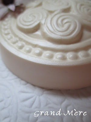 'Grand-mère' es un jabón que se convierte en crema al contacto con el agua, algo así como una crema sólida jabonosa. Queríamos que estuviera inspirado en los jabones antiguos de tocador, blancos, muy cremosos y suaves y que oliera a crema hidratante.
